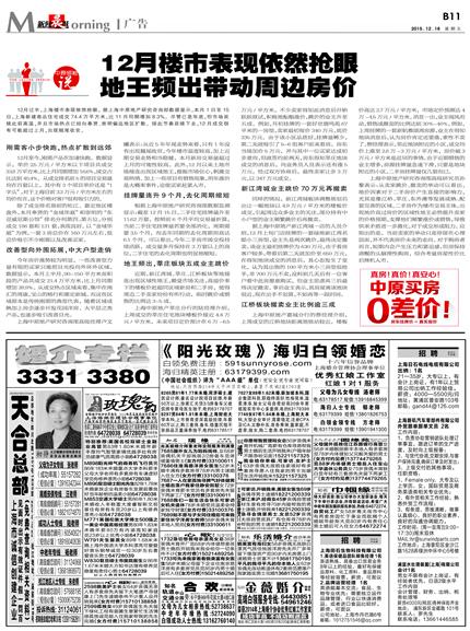 12月过半,上海楼市表现依然抢眼。据上海中原地产研究咨询部数据显示,本月1日至15日,上海新建商品住宅成交74.4万平方米,比11月同期增加8.3%。尽管已是年底,但市场延续此前高温,并且市场热点已经向奉贤、崇明偏远地区扩散。按此节奏延续下去,12月成交很有可能超过上月,出现翘尾收官。