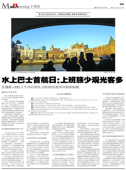 昨天,伴随着江面寒风,黄浦江水上巴士开始在早晚高峰开启两个月的试航。