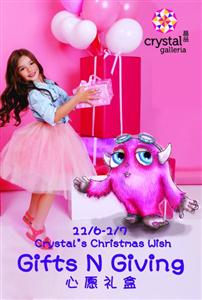 上周三,城中潮流时尚地标的晶品Crystal Galleria购物中心正式开启了为期两个月的圣诞主题活动。此次,晶品继续以原创形象Crystal,展开了一段有关“Gifts N Giving”的心愿旅程。