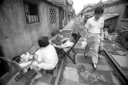 记得上世纪90年代,吴淞铁路两旁居民违章搭建建筑连成一片,居民的住宅领地与铁路轨道是“寸土必争”,民宅与火车近在咫尺。据曾经驾驶淞沪铁路的火车司机史玉忠介绍,当年驾驶火车行驶在淞沪线路上特别小心翼翼,在驾驶室里,不断地伸出手把居民家窗户关上才能继续行驶。铁路成为居民的“休闲活动中心”,居民们在铁道上“搓麻将”,学生在钢轨上走“平衡木”,铁道成为修理加工场,如此场景令人叹为观止。