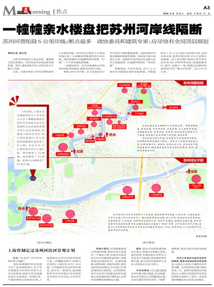 同济大学建筑与城市规划学院教师、国家注册规划师刘悦来博士:从技术上来说,打通苏州河不是问题,无非是有的方案可能代价高一点。如果当初政府向开发商出让土地时已经把苏州河亲水区的部分也纳入了其中,将来贯通可能要征求小区业主的意见。