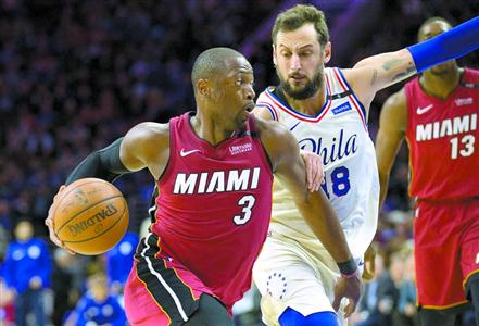 2017-2018赛季美职篮季后赛首轮16日进行了两场比赛,36岁老将韦德帮助迈阿密热火队客场以113∶103击败费城76人队,将总比分扳为1∶1。
